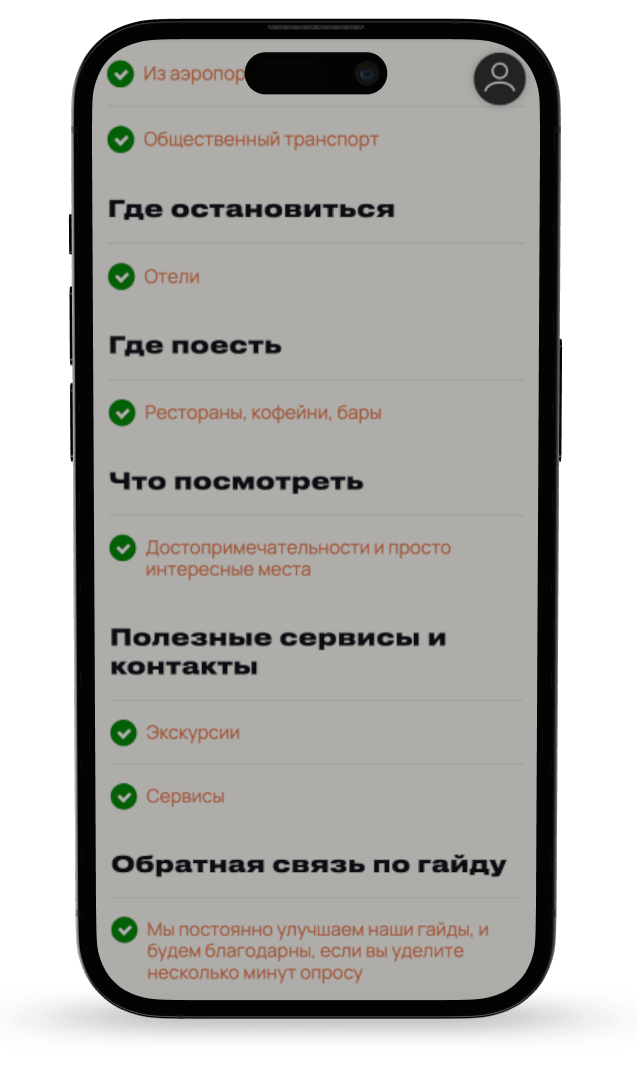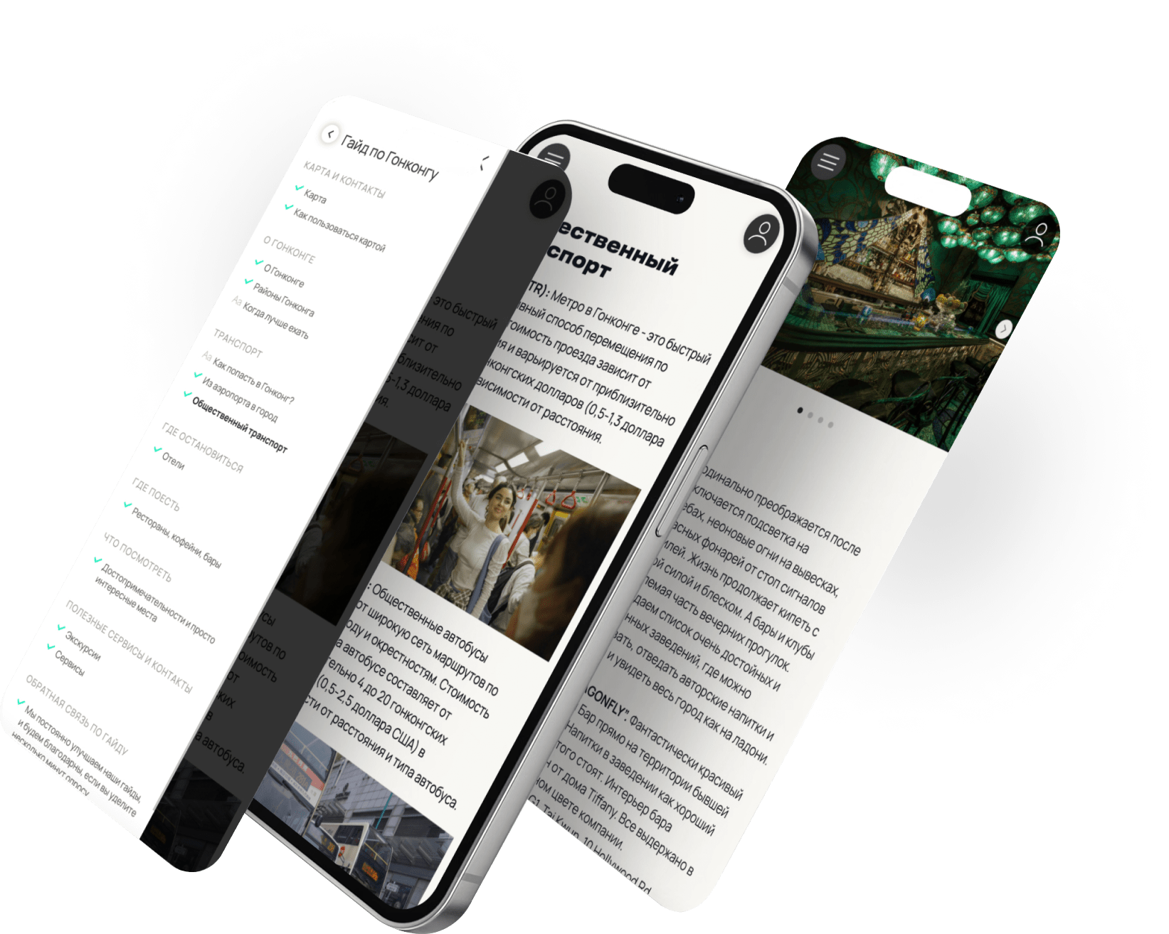 В путеводителе вы найдете информацию о том, как добраться до города, основные достопримечательности, факты о культуре и истории, рекомендации по ресторанам и отелям, список полезных сервисов и приложений, а также карту с отмеченными точками из путеводителя.